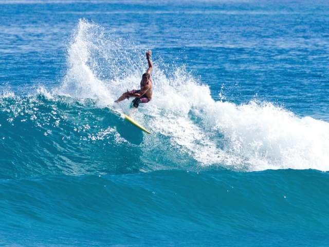 Warm water and a laid-back surf vibe—great for learning on mellow days or just enjoying the ocean energy.